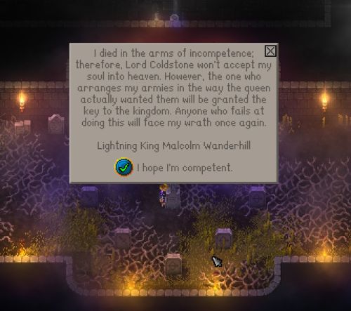 解法は、Fallowfieldsマップ上のランダムな場所に出現する「ロージーの墓」に書かれています。